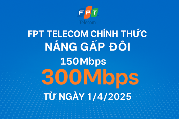 Từ ngày 1/4/2025, FPT Telecom nâng cấp băng thông lên đến 300Mbps cho gói cước 150Mbps hiện tại, hoàn toàn miễn phí. Cập nhật ngay thông tin mới nhất tại lapmangfpt-toanquoc.com.vn!
